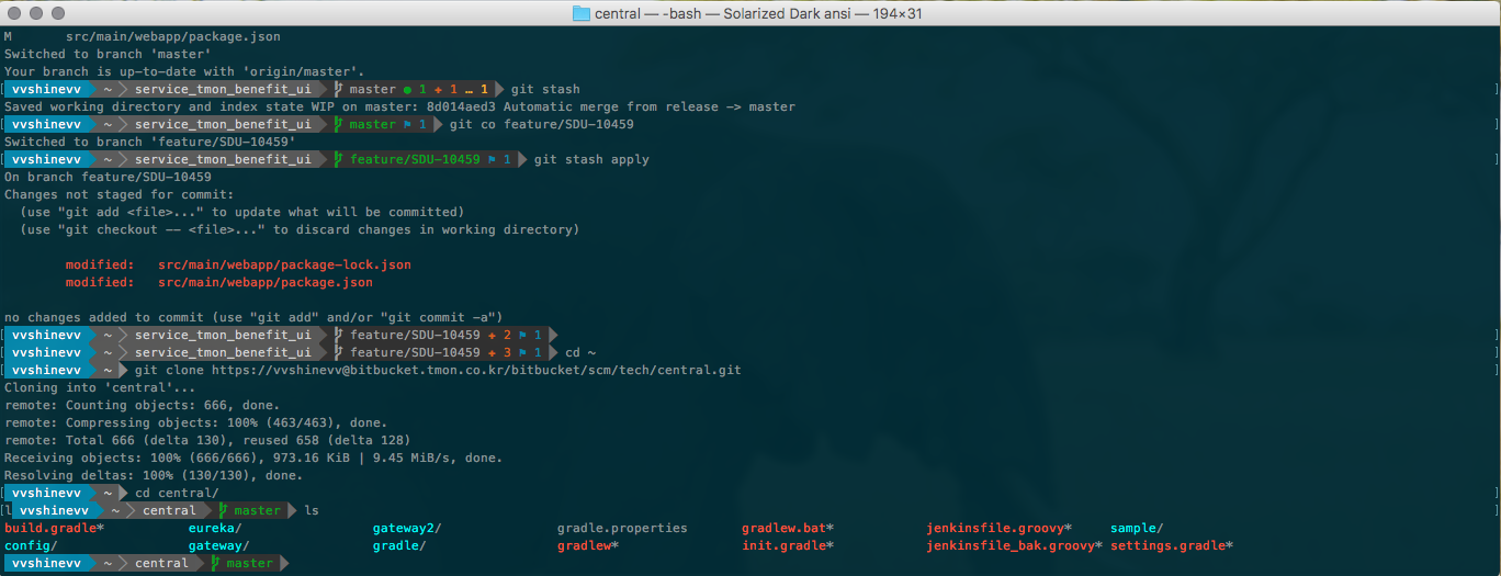 근데 뭔가 "?"의 깨진 것과 같은 아이콘이 있습니다. Powerline은 기본적으로 사용할 수 없는 다양한 아이콘과 글꼴을 사용하기 때문입니다. 따라서 글꼴을 설치해야합니다.