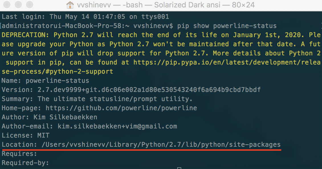 아래 명령어를 실행하여 Powerline의 설치된 위치를 알아낼 수 있습니다.